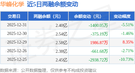 证券之星消息,12月31日,华峰化学(002064)融资买入1144.47万元,融资偿还2256.95万元,融资净卖出1112.48万元,融资余额2.31亿元。