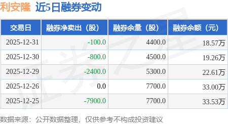 证券之星消息,12月31日,利安隆(300596)融资买入1465.62万元,融资偿还2688.67万元,融资净卖出1223.05万元,融资余额2.68亿元。