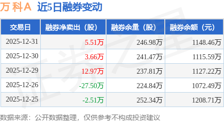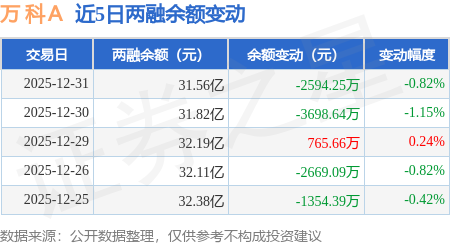 证券之星消息,12月31日,万 科A(000002)融资买入4740.28万元,融资偿还7367.4万元,融资净卖出2627.12万元,融资余额31.45亿元。