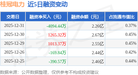 证券之星消息,12月31日,桂冠电力(600236)融资买入2035.83万元,融资偿还6130.27万元,融资净卖出4094.44万元,融资余额2.26亿元,近20个交易日中有15个交易日出现融资净买入。