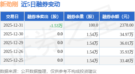 证券之星消息,12月31日,新劲刚(300629)融资买入1.01亿元,融资偿还1.53亿元,融资净卖出5227.93万元,融资余额4.55亿元。