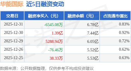 证券之星消息,12月31日,华能国际(600011)融资买入4986.3万元,融资偿还1.15亿元,融资净卖出6545.08万元,融资余额6.78亿元,近20个交易日中有13个交易日出现融资净买入。