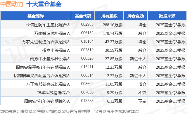 重仓中国动力的前十大公募基金请见下表: