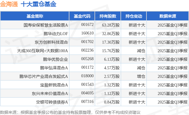 重仓金海通的前十大公募基金请见下表: