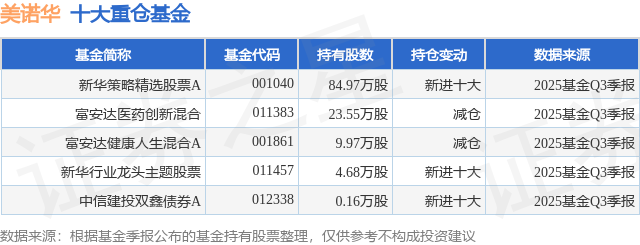 重仓美诺华的公募基金请见下表: