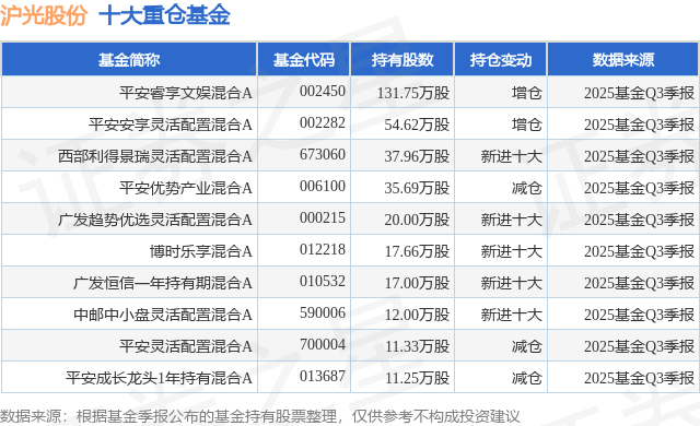 根据2025基金Q3季报公募基金重仓股数据,重仓该股的公募基金共16家,其中持有数量最多的公募基金为平安基金的平安睿享文娱混合A。平安睿享文娱混合A目前规模为7.76亿元,最新净值2.637(12月31日),较上一交易日下跌1.31%,近一年上涨70.24%。该公募基金现任基金经理为黄维。黄维在任的基金产品包括:平安优势产业混合A,管理时间为2018年8月22日至今,期间收益率为260.42%;平安价值成长混合A,管理时间为2020年9月24日至今,期间收益率为19.61%;平安睿享成长混合A,管理时间为2021年8月5日至今,期间收益率为-0.72%。