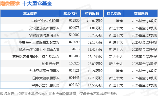 重仓南微医学的前十大公募基金请见下表: