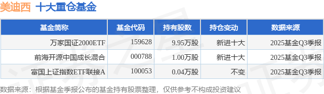 根据2025基金Q3季报公募基金重仓股数据,重仓该股的公募基金共3家,其中持有数量最多的公募基金为万家基金的万家国证2000ETF。万家国证2000ETF目前规模为12.86亿元,最新净值1.345(12月31日),较上一交易日上涨0.0%,近一年上涨34.55%。该公募基金现任基金经理为杨坤。杨坤在任的基金产品包括:万家中证红利ETF联接A,管理时间为2019年10月24日至今,期间收益率为71.21%;万家国证2000ETF发起联接A,管理时间为2022年10月11日至今,期间收益率为35.0%;万家北证50成份指数发起式A,管理时间为2023年5月5日至今,期间收益率为48.67%。