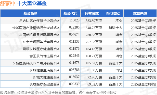 重仓舒泰神的前十大公募基金请见下表: