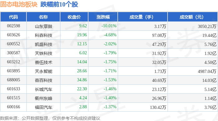 从资金流向上来看,当日固态电池板块主力资金净流入27.77亿元,游资资金净流出18.56亿元,散户资金净流出9.21亿元。固态电池板块个股资金流向见下表: