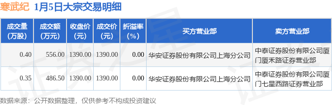 证券之星消息,1月5日寒武纪发生大宗交易,交易数据如下: