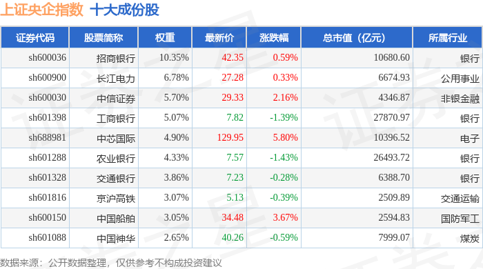 证券之星消息,1月5日,上证央企(000042)指数报收于1826.59点,涨0.84%,成交1051.17亿元,换手率0.36%。当日该指数成份股中,上涨的有30家,中国卫通以9.99%的涨幅领涨,下跌的有17家,中国中免以4.52%的跌幅领跌。