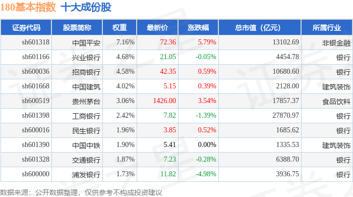 180基本(000053)指数十大成份股详情如下: