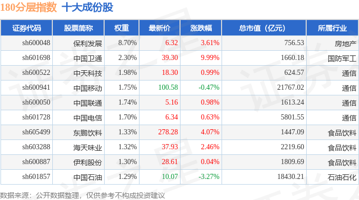 180分层(000093)指数十大成份股详情如下: