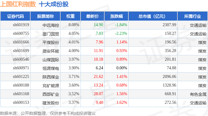 上国红利(000151)指数十大成份股详情如下: