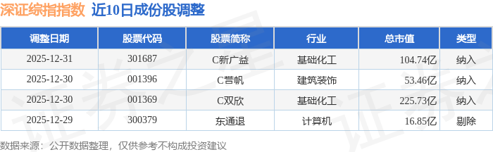 近10日内深证综指(399106)指数成份股做了调整,新纳入了3只股票,剔除了1只股票。