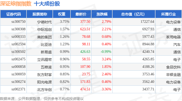 资金流向方面,深证综指(399106)指数成份股当日主力资金净流入合计8.63亿元,游资资金净流出合计124.39亿元,散户资金净流入合计115.76亿元。成份股资金流向详情见下表: