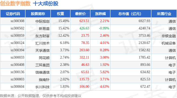 创业数字(399263)指数十大成份股详情如下: