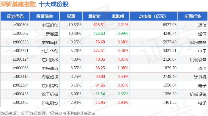 深新基建(399274)指数十大成份股详情如下: