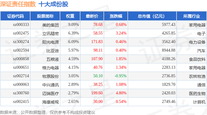深证责任(399341)指数十大成份股详情如下: