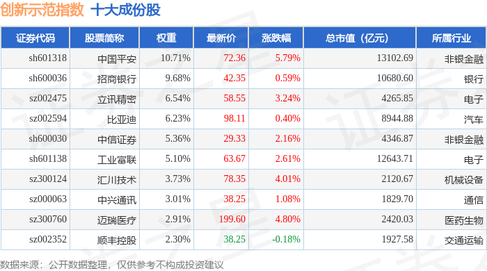 创新示范(399351)指数十大成份股详情如下: