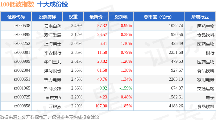 证券之星消息,1月5日,100低波(399645)指数报收于9517.89点,涨0.9%,成交550.63亿元,换手率0.99%。当日该指数成份股中,上涨的有36家,盐湖股份以10.01%的涨幅领涨,下跌的有13家,分众传媒以1.76%的跌幅领跌。