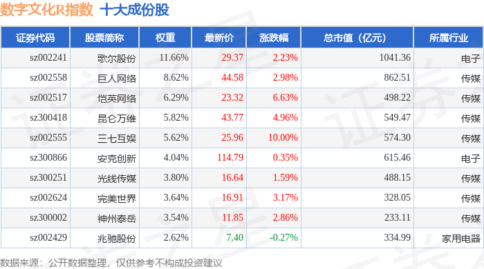 资金流向方面,数字文化R(470047)指数成份股当日主力资金净流入合计14.5亿元,游资资金净流出合计11.45亿元,散户资金净流出合计3.04亿元。成份股资金流向详情见下表: