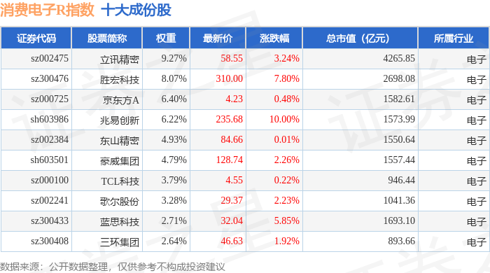 消费电子R(480030)指数十大成份股详情如下:
