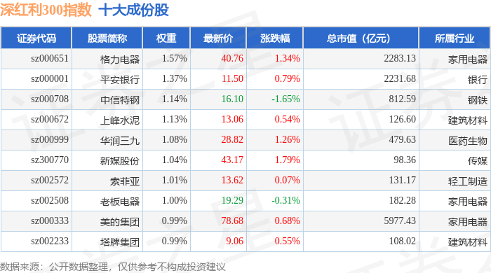 证券之星消息,1月5日,深红利300(970062)指数报收于5671.16点,涨1.23%,成交2517.28亿元,换手率2.16%。当日该指数成份股中,上涨的有244家,康弘药业以10.01%的涨幅领涨,下跌的有53家,京基智农以6.53%的跌幅领跌。