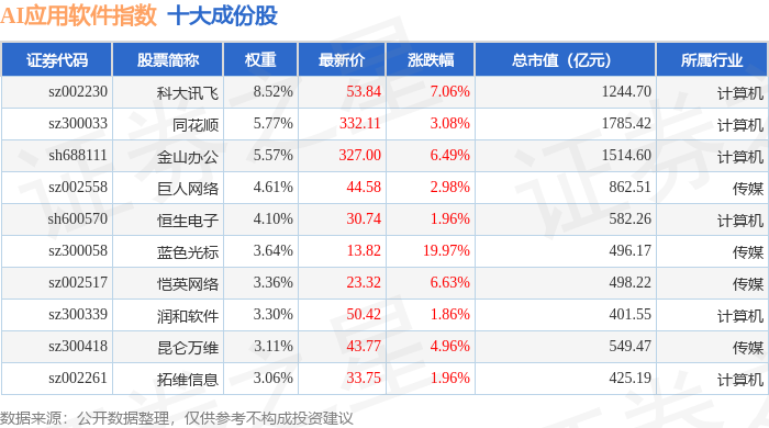 资金流向方面,AI应用软件(980107)指数成份股当日主力资金净流入合计7.09亿元,游资资金净流出合计4.38亿元,散户资金净流出合计2.71亿元。成份股资金流向详情见下表: