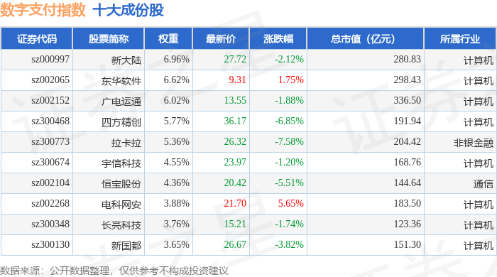 资金流向方面,数字支付(980113)指数成份股当日主力资金净流出合计12.79亿元,游资资金净流入合计7452.4万元,散户资金净流入合计11.93亿元。成份股资金流向详情见下表: