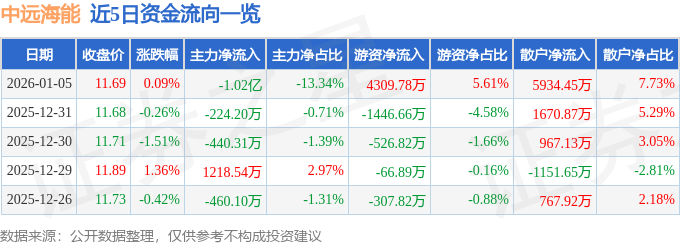 1月5日的资金流向数据方面,主力资金净流出1.02亿元,占总成交额13.34%,游资资金净流入4309.78万元,占总成交额5.61%,散户资金净流入5934.45万元,占总成交额7.73%。