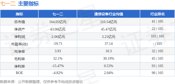 该股主要指标及行业内排名如下: