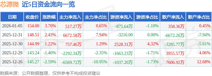 证券之星消息,截至2026年1月5日收盘,芯源微(688037)报收于154.0元,上涨3.7%,换手率2.56%,成交量5.16万手,成交额7.98亿元。