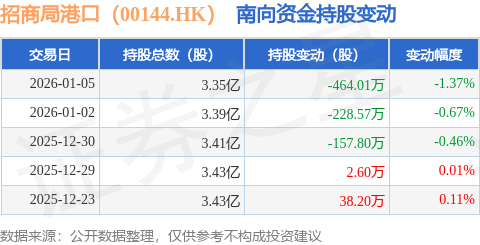 证券之星消息,1月5日南向资金减持464.01万股招商局港口(00144.HK)。近5个交易日中,获南向资金减持的有3天,累计净减持809.57万股。近20个交易日中,获南向资金减持的有9天,累计净减持939.77万股。截至目前,南向资金持有招商局港口(00144.HK)3.35亿股,占公司已发行普通股的7.95%。