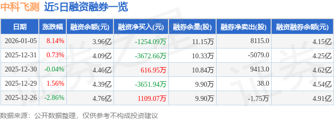 中科飞测融资融券信息显示,融资方面,当日融资买入8180.47万元,融资偿还9434.56万元,融资净偿还1254.09万元。融券方面,融券卖出1.1万股,融券偿还2885.0股,融券余量11.15万股,融券余额1843.85万元。融资融券余额4.15亿元。