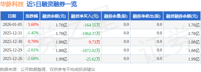 证券之星消息,截至2026年1月5日收盘,华脉科技(603042)报收于17.92元,上涨5.6%,换手率13.02%,成交量20.91万手,成交额3.75亿元。