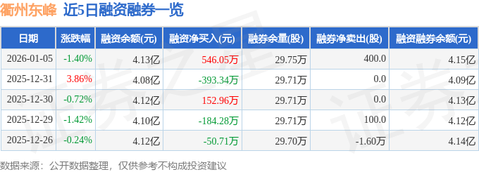 衢州东峰融资融券信息显示,融资方面,当日融资买入2024.47万元,融资偿还1478.41万元,融资净买入546.05万元。融券方面,融券卖出400.0股,融券偿还0.0股,融券余量29.75万股,融券余额126.14万元。融资融券余额4.15亿元。