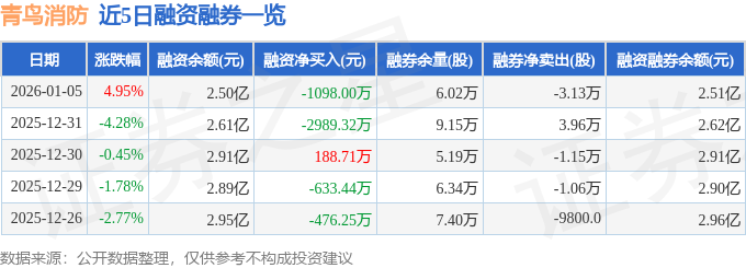 证券之星消息,截至2026年1月5日收盘,青鸟消防(002960)报收于11.03元,上涨4.95%,换手率3.4%,成交量25.41万手,成交额2.75亿元。