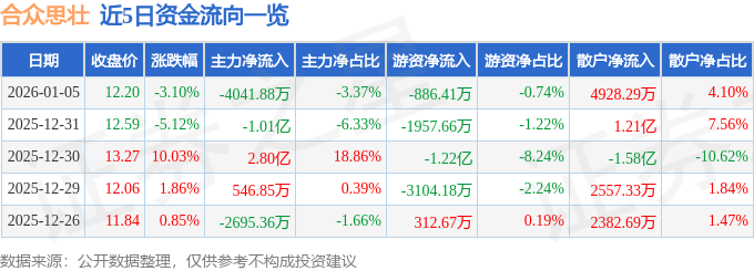 证券之星消息,截至2026年1月5日收盘,合众思壮(002383)报收于12.2元,下跌3.1%,换手率13.26%,成交量98.2万手,成交额12.01亿元。