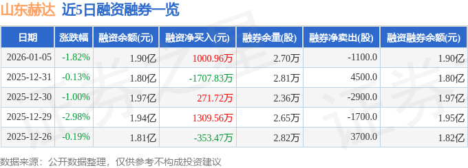 山东赫达融资融券信息显示,融资方面,当日融资买入3656.99万元,融资偿还2656.03万元,融资净买入1000.96万元。融券方面,融券卖出100.0股,融券偿还1200.0股,融券余量2.7万股,融券余额39.31万元。融资融券余额1.9亿元。