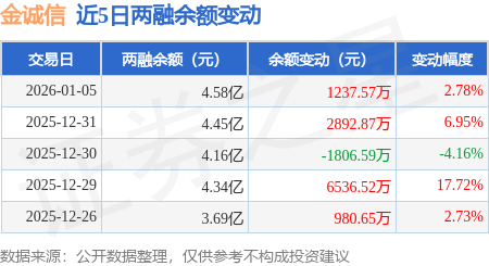 证券之星消息,1月5日,金诚信(603979)融资买入5865.96万元,融资偿还4628.3万元,融资净买入1237.66万元,融资余额4.51亿元。