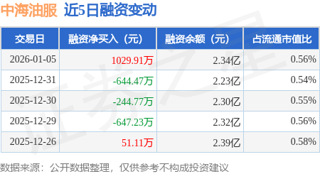 证券之星消息,1月5日,中海油服(601808)融资买入2844.64万元,融资偿还1814.73万元,融资净买入1029.91万元,融资余额2.34亿元,近20个交易日中有11个交易日出现融资净买入。