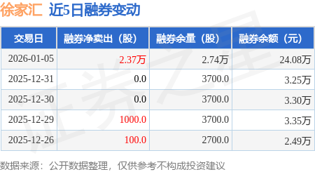 证券之星消息,1月5日,徐家汇(002561)融资买入1479.81万元,融资偿还677.78万元,融资净买入802.03万元,融资余额1.35亿元。
