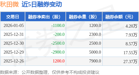 证券之星消息,1月5日,秋田微(300939)融资买入1894.59万元,融资偿还1188.7万元,融资净买入705.89万元,融资余额1.43亿元,近20个交易日中有11个交易日出现融资净买入。