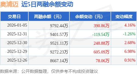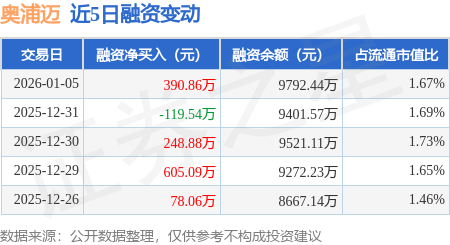 证券之星消息,1月5日,奥浦迈(688293)融资买入1503.41万元,融资偿还1112.55万元,融资净买入390.86万元,融资余额9792.44万元。
