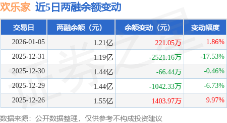 证券之星消息,1月5日,欢乐家(300997)融资买入3852.93万元,融资偿还3632.09万元,融资净买入220.84万元,融资余额1.2亿元,近20个交易日中有11个交易日出现融资净买入。