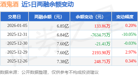 证券之星消息,1月5日,酒鬼酒(000799)融资买入5032.99万元,融资偿还4899.94万元,融资净买入133.05万元,融资余额6.85亿元,近20个交易日中有12个交易日出现融资净买入。