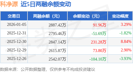证券之星消息,1月5日,科净源(301372)融资买入326.21万元,融资偿还234.24万元,融资净买入91.96万元,融资余额2887.42万元。