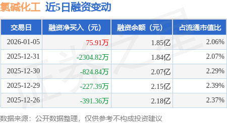 证券之星消息,1月5日,氯碱化工(600618)融资买入1372.55万元,融资偿还1296.64万元,融资净买入75.91万元,融资余额1.85亿元。
